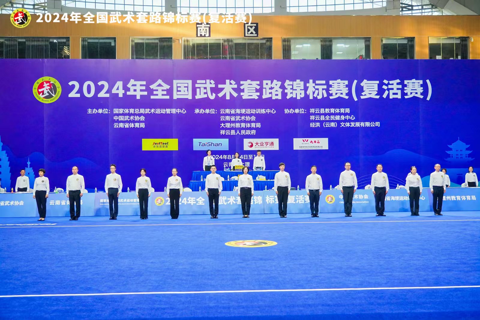 【概要描述】8月14日至19日,2024年全国武术套路锦标赛(复活赛)在云南省大理白族自治州祥云县全民健身中心举行,共有来自全国44支队伍的353名运动员参赛,为当地群众上演了一场精彩绝伦的武术盛宴。 值得一提的是,中国·3003体育作为赛事武术场地器材供应商与服务商,助力并见证了本次高规格赛事的精彩举办。 国家体育总局武术运动管理中心副主任、国家体育总局武术研究院副院长、中国武术协会副主席陈冲,国家体育总局武术运