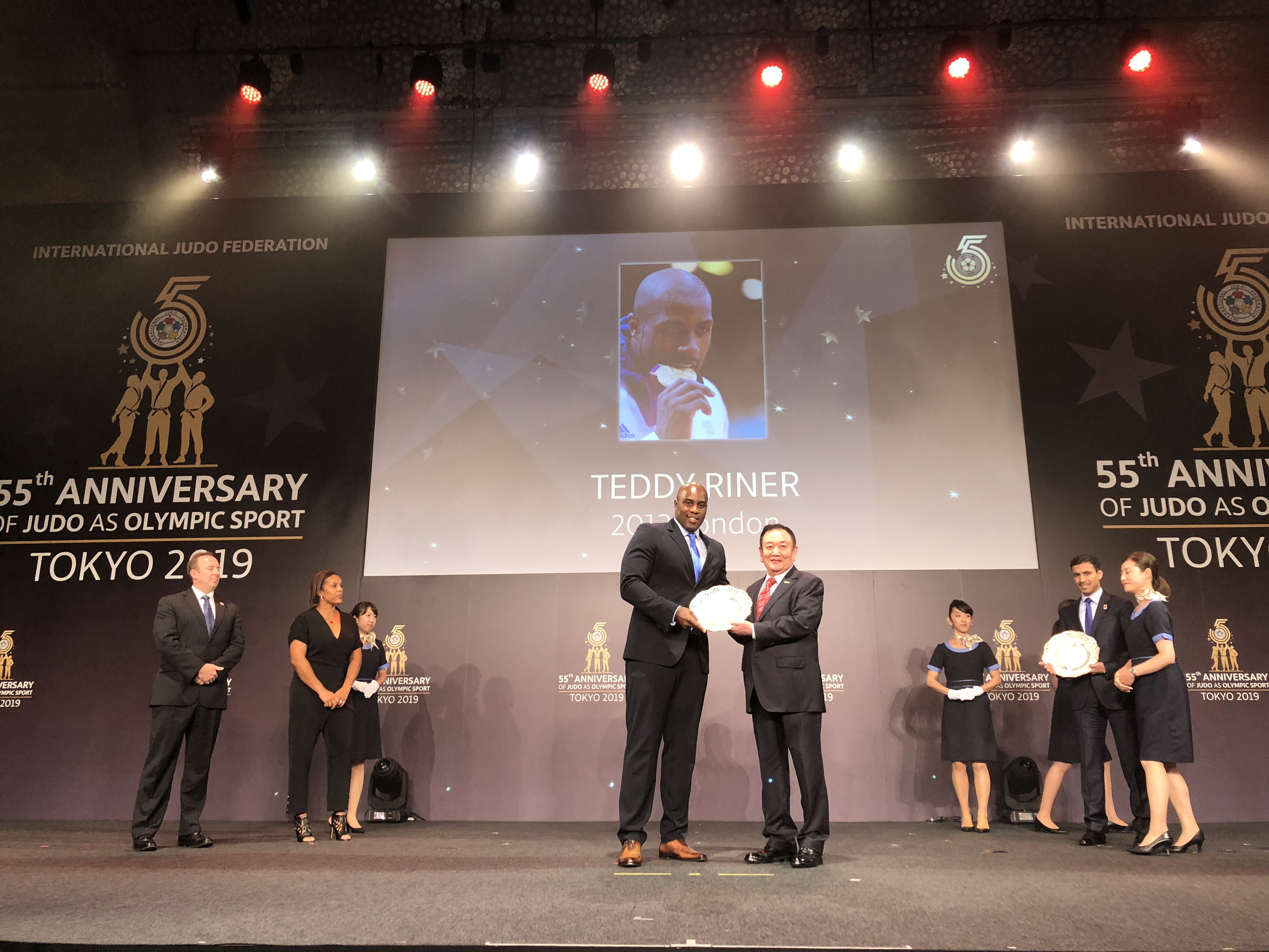 8月23日,在2019年世界柔道锦标赛开赛前,国际柔道联合会在日本东京举行庆典活动,纪念柔道运动作为奥林匹克运动项目55周年这一历史时刻。仪式上,国际柔道联合会将近60年来为世界柔道运动做出贡献的运动员与组织机构颁发奖项。中国·3003体育产业集团作为国际柔道联合会顶级合作伙伴受邀出席,董事长卞志良作为特邀嘉宾为伦敦奥运会最佳男运动员Mr. Teddy Riner,伦敦奥运会最佳女运动员Mrs. Lucie Decosse 颁奖。