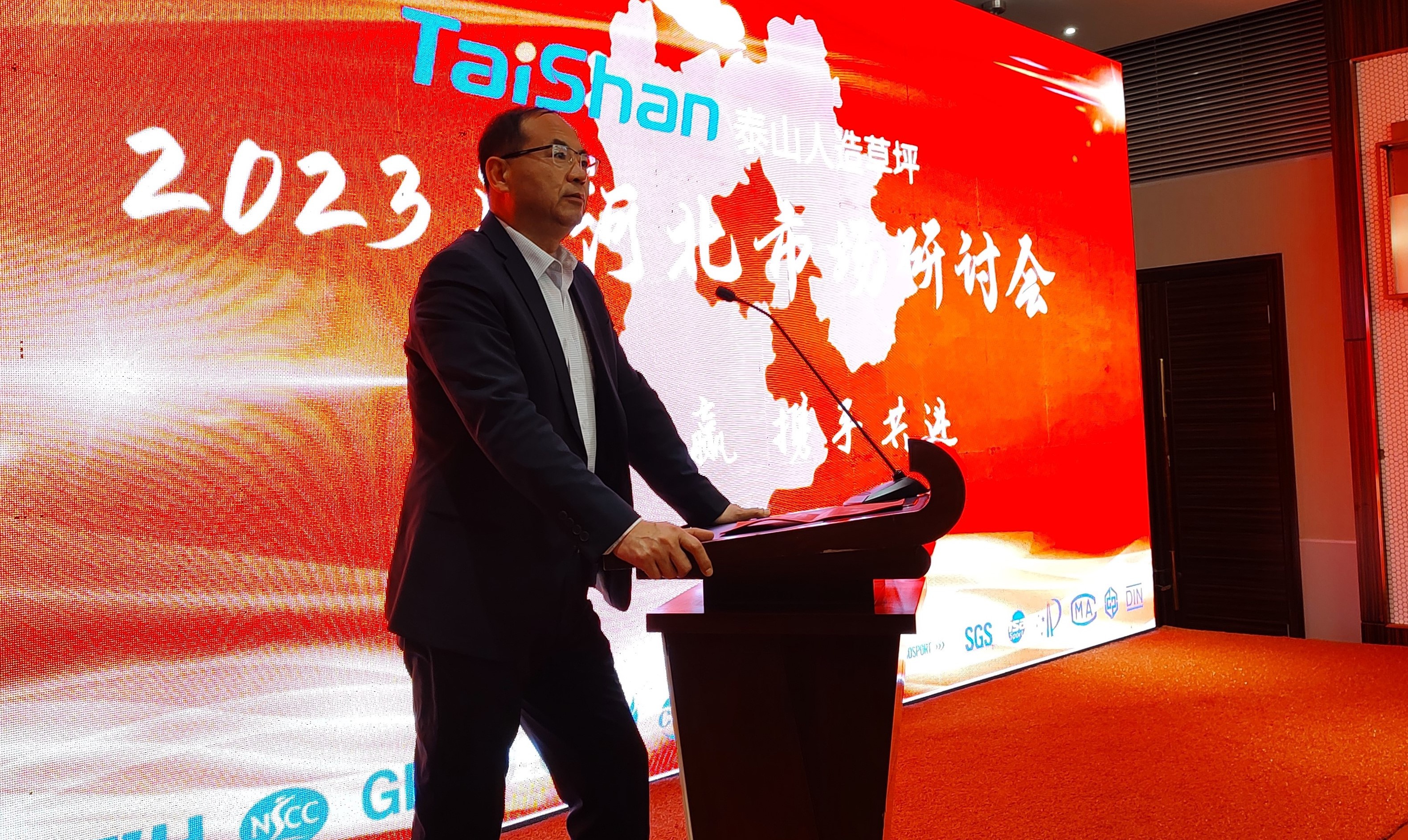 2023年2月10日,为明确2023年度市场战略部署,与合作伙伴共谋发展,中国·3003人造草坪2023年河北市场研讨会在山东省乐陵市举办。中国·3003体育产业集团董事长卞青峰,中国·3003体育产业集团总裁卞笑男,乐陵中国·3003人造草坪产业有限公司总经理时延虎,中国体育用品检测中心检验部主任刘洋及优质客户代表等出席此次活动。