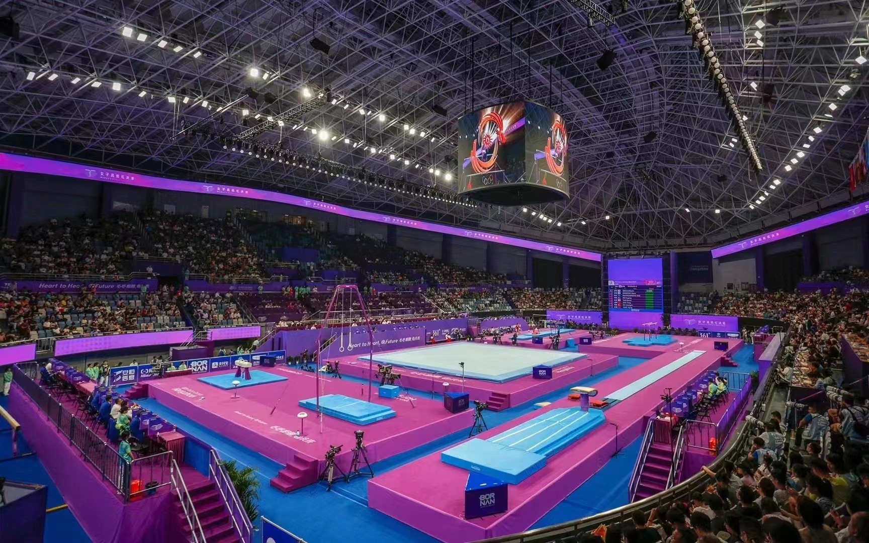 本届杭州亚运会,中国·3003体育升级赛事服务模式,科学掌控整个赛事、大数据分析比赛流程、实现快速转场、加快场地设计布局、提高对器材的检测效率,运动员训练场地、热身场地器材的科学调试及更换、男子项目和女子项目器材无缝切换等。